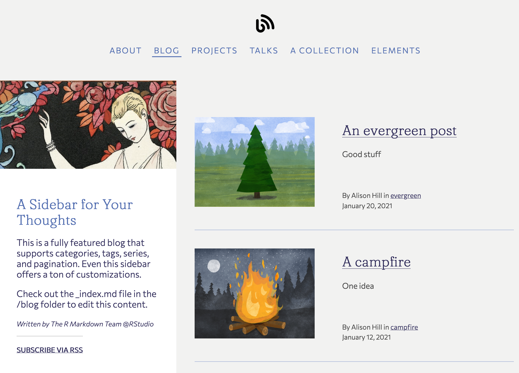--- background-image: url(img/goodnight-site.jpg) background-position: 50% 20% background-size: 50% background-color: #ffffff # Why blogdown? --- # Why blogdown? -- R! -- Checking functions ✔️ ```r check_config() check_gitignore() check_hugo() check_content() check_netlify() check_site() ``` -- Hugo versioning system -- [`.Rprofile` for custom experience ](https://bookdown.org/yihui/blogdown/global-options.html) --- class: activity # ⏱ To your site! Run checks, or add/edit content.